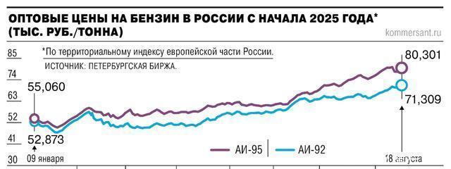 尽管有政府补贴,俄罗斯消费者在加油站支付的费用却更高。根据俄罗斯国际文传电讯社的报道,圣彼得堡交易所汽油批发价格仅本月就上涨了近10%,年初以来上涨了约50%。 自年初以来,俄罗斯的汽油价格上涨了40%-50%,整个8月他们一直在改写历史记录,8月23日,Ai-92的成本达到每吨72.6万卢布,Ai-95上涨到8.22万卢布。 NEFTResearch管理合伙人谢尔盖·弗罗洛夫(SergeyFrolov)告诉俄罗斯报纸《生意人报》,不幸的是,我们的预测目前是不利的——我们很可能至少还要再等一个月才能让价格下跌,本月价格飙升是“由于炼油厂被无人机袭击”。 军方受到的影响较小,因为其需求主要是柴油,而柴油供应受到的影响较小。 由于俄罗斯当局屏蔽了越来越多的统计数据,去年在乌克兰频繁袭击炼油厂后,克里姆林宫宣布将炼油厂的成品油产量列入分类范围,所以实际上没有人知道俄罗斯实际生产了多少汽油,但不再公布成品油产量这一事实,本身就意味着俄罗斯炼油产能的严重恶化。 俄罗斯能源部长谢尔盖·齐维列夫(SergeiTsivilev)在7月份承认,炼油工厂的问题还与干扰其正常维修的经济制裁有关。
